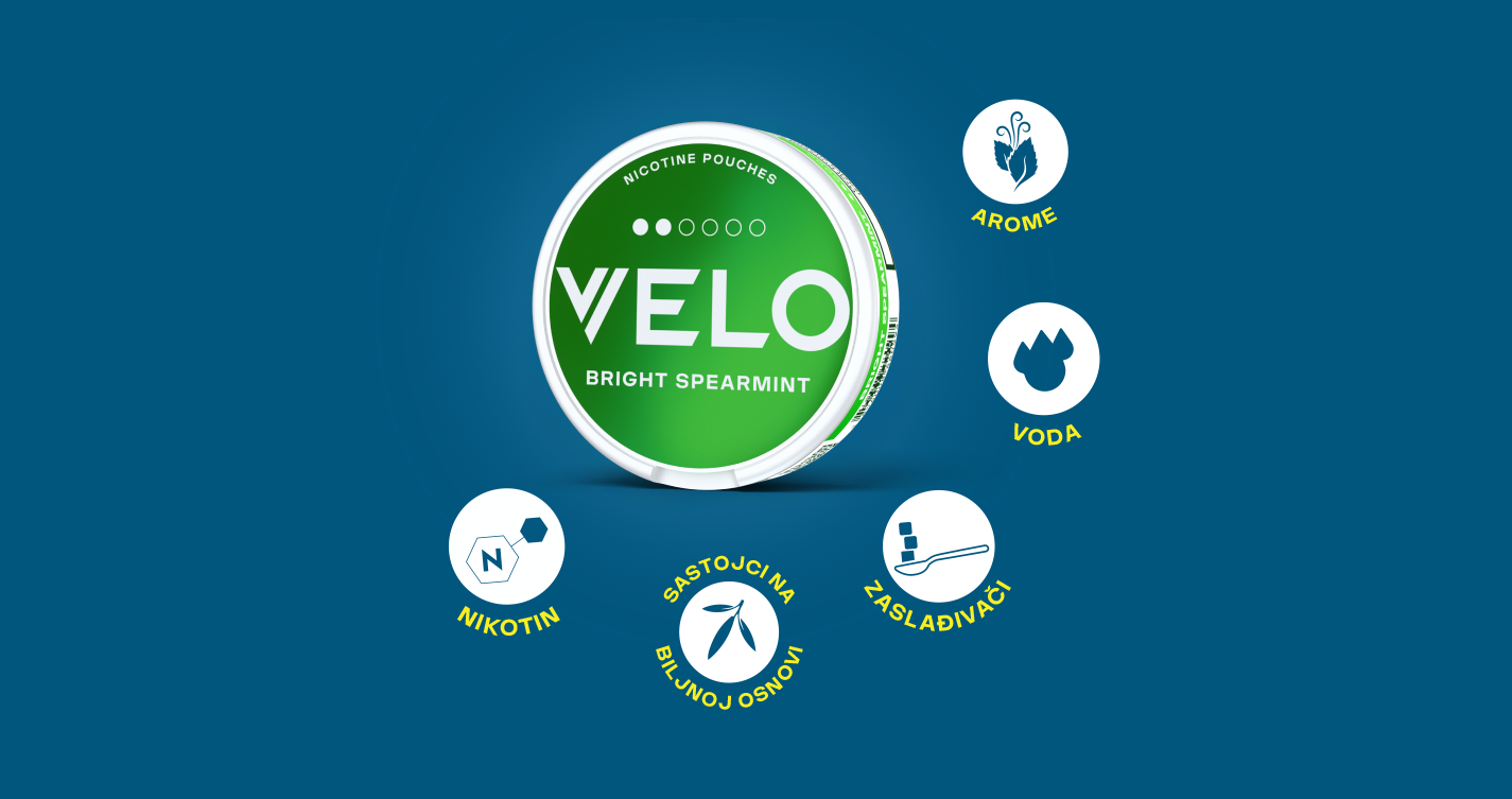 VELO sadrži vodu, sastojke na biljnoj bazi,