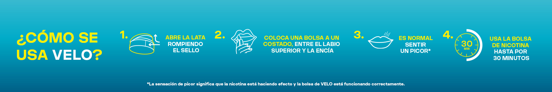 *La sensación de hormigueo significa que la nicotina está haciendo efecto y la bolsa de VELO está funcionando correctamente.