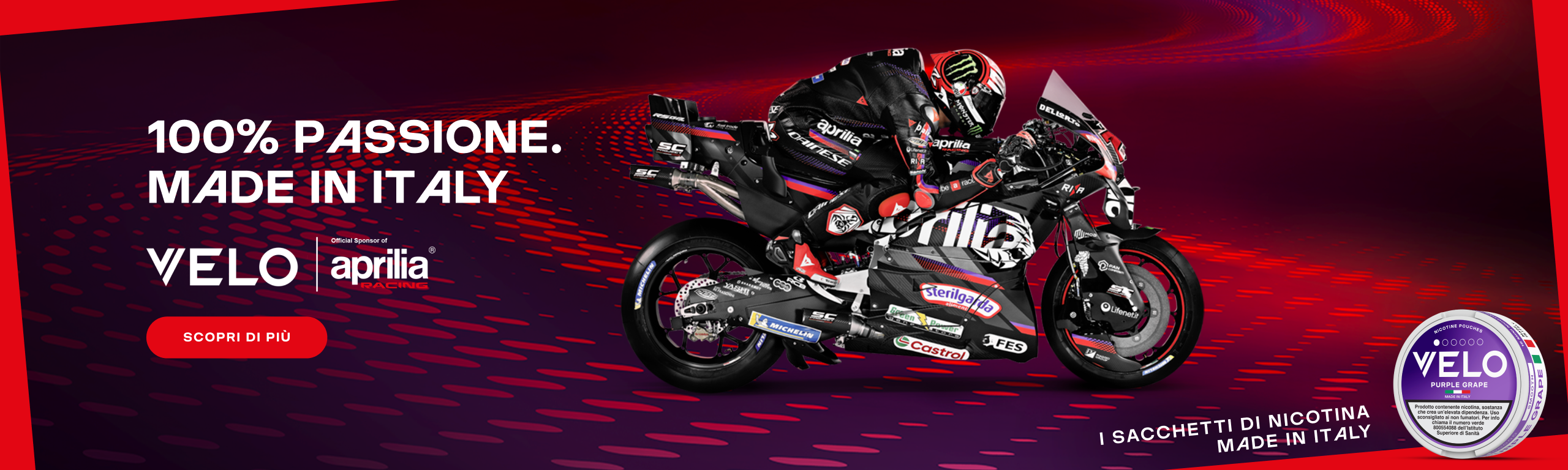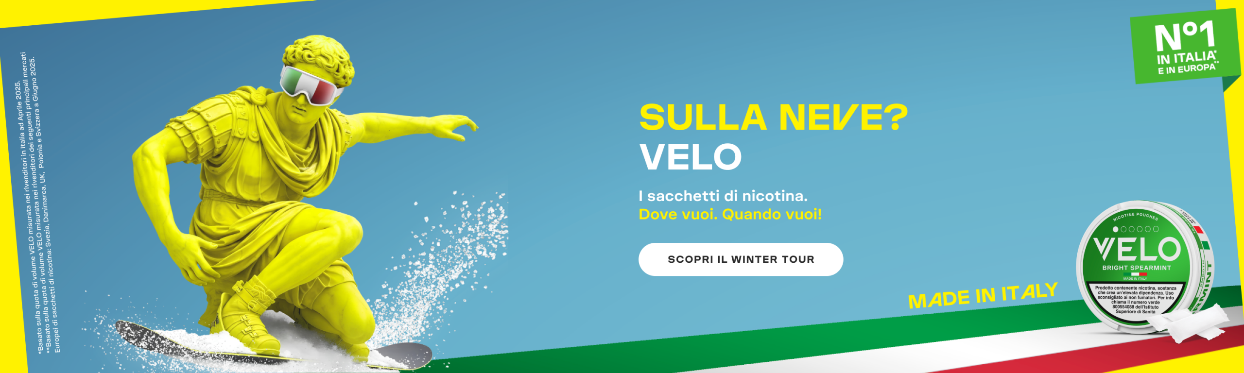 A partire dal 1° Gennaio 2026, a causa della nuova Legge 30 dicembre 2025, n.199, che vieta in Italia la vendita online di sacchetti di nicotina, i prodotti Velo non sono più acquistabili sul nostro sito. Potrai sempre trovarli presso i rivenditori autorizzati.
