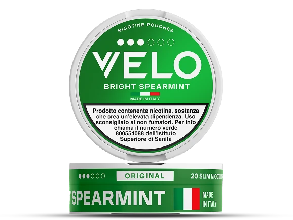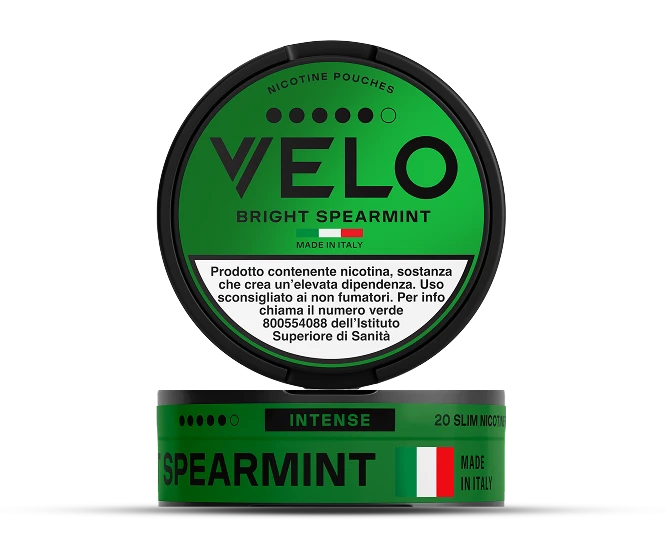 - Velo «Massima Intensità» è disponibile nell’opzione 5 pallini, che corrisponde a 14mg di nicotina per sacchetto. I gusti disponibili sono Bright Spearmint e Crispy Peppermint.