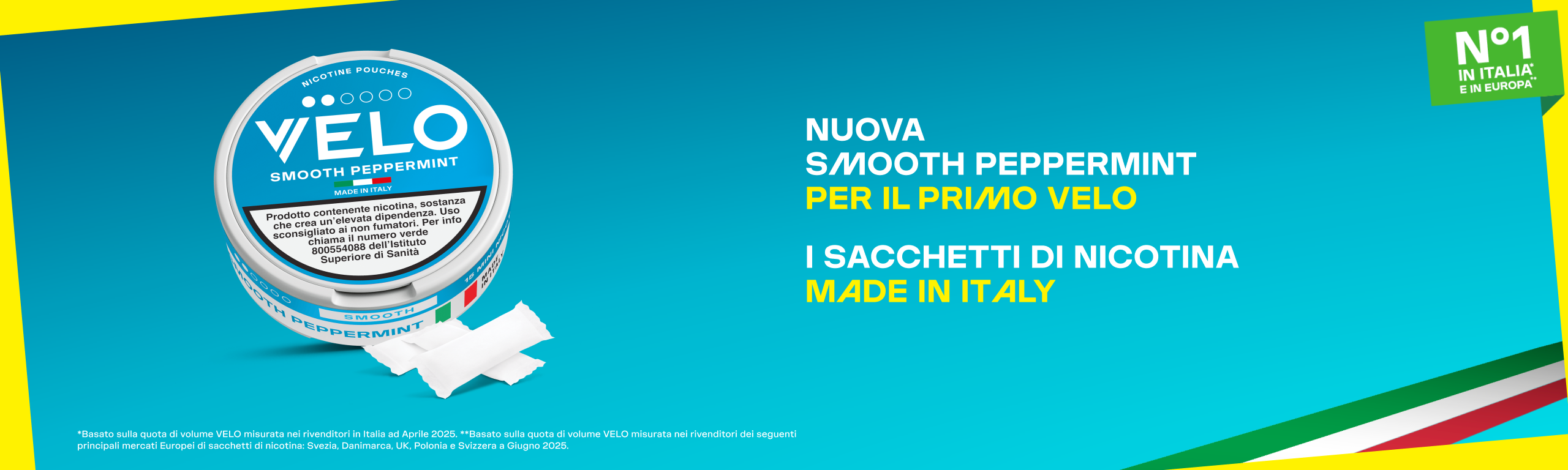 Per chi prova VELO per la prima volta, raccomandiamo di utilizzare il livello di intensità più basso, ovvero la gamma VELO Smooth - IL PRIMO VELO. I range VELO Original - PER ESPERTI e VELO Intense - MASSIMA INTENSITÀ sono per consumatori di sacchetti di nicotina esperti.