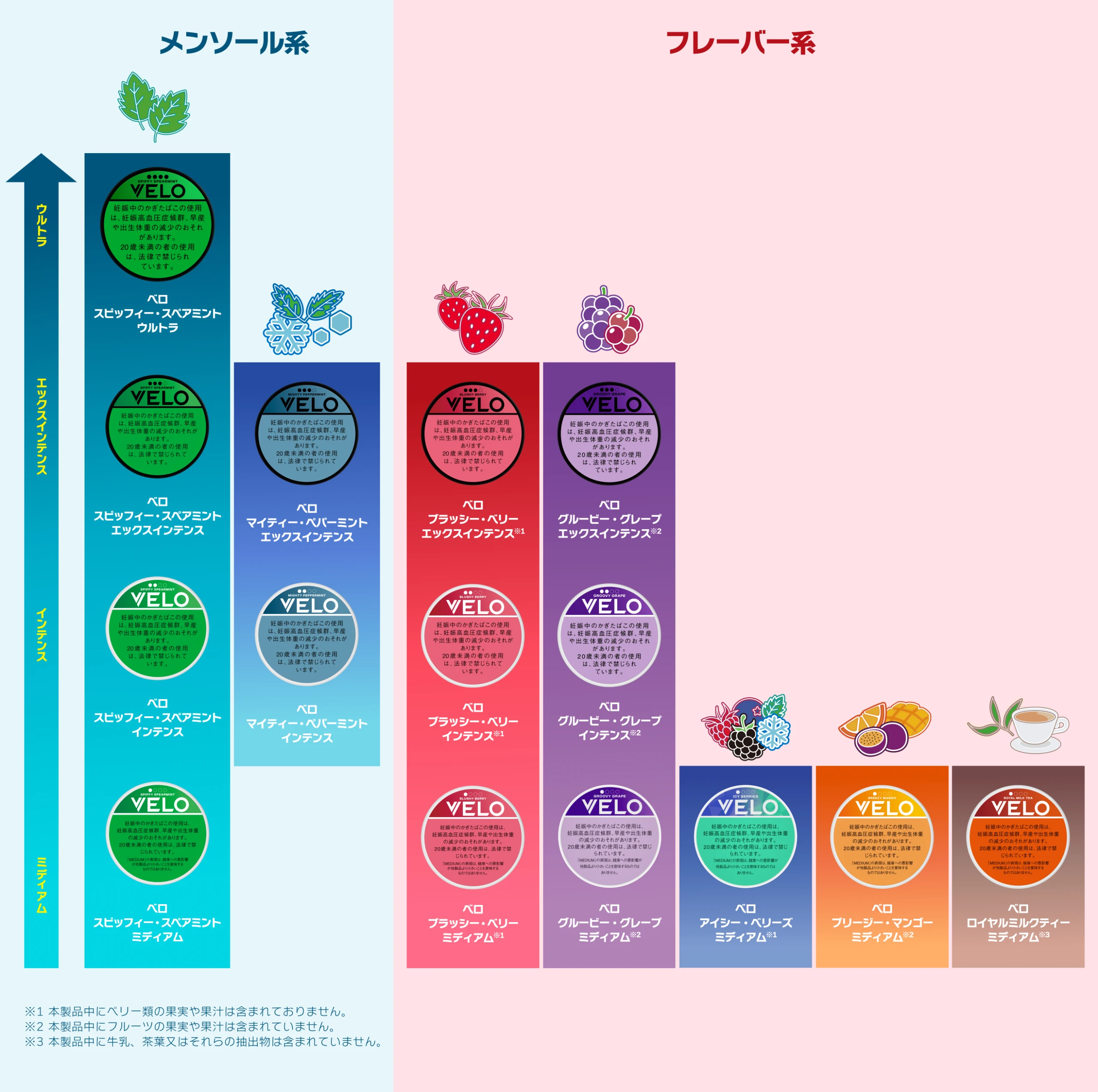 ※1 本製品中にベリー類の果実や果汁は含まれておりません。 ※2 本製品中にフルーツの果実や果汁は含まれていません。 ※3 本製品中に牛乳、茶葉又はそれらの抽出物は含まれていません。