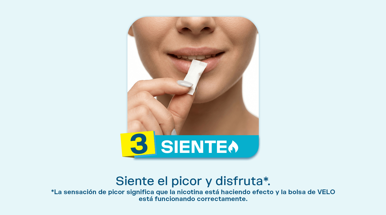 *La sensación de picor significa que la nicotina está haciendo efecto y el saco de VELO está funcionando correctamente.