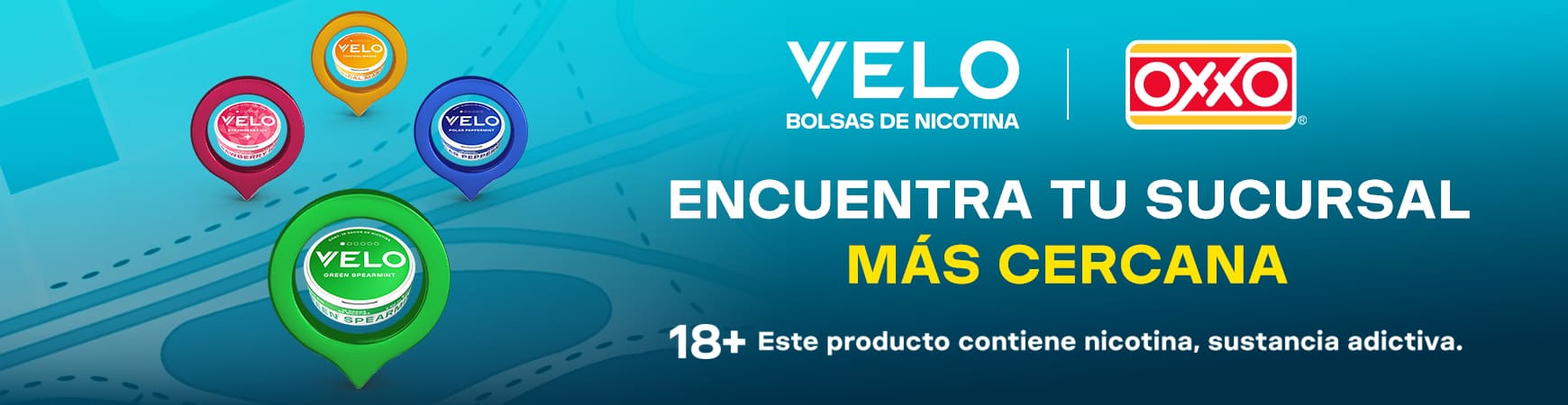 VELO te ofrece nicotina sin humo ni tabaco, con sabores únicos y una experiencia discreta y moderna. Estos OXXO participantes son tu punto de venta confiable para disfrutar tu promoción.
