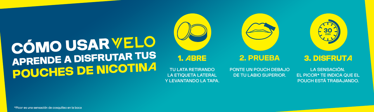 ¡Descubre los Pouches de Nicotina Velo! Abre tu lata. Ponte un pouch debajo de tu labio y disfruta. Extraño y Extraordinario
