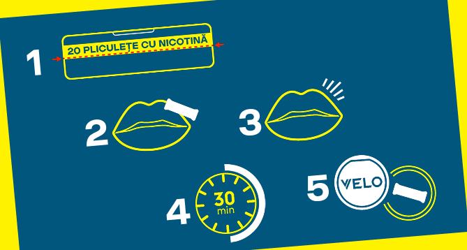 Pliculețele VELO eliberează nicotină fără fum, vapori sau miros*. Nicotina este absorbită prin gingii, timp de până la 30 de minute. Când timpul s-a scurs, îndepărtează pliculețul cu ajutorul unui deget și aruncă-l în mod responsabil.