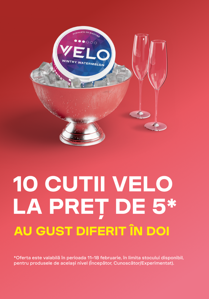 VELO este un produs cu nicotină pentru uz oral și care poate fi consumat oriunde și oricând fară fum* și fară scrum*. Brandul face parte din categoria de pliculețe cu nicotină și nu este snus.