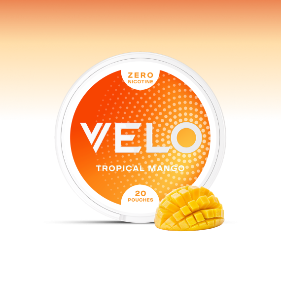 Velo Tropical Mango Zero är fri från tobak och niktoin med en fruktig smak av mango tillsammans med passionsfrukt och mandarin.