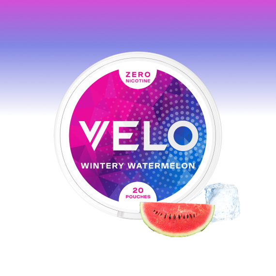 Velo Wintery Watermelon Zero är med smak av vattenmelon och mynta. Helt utan nikotin.