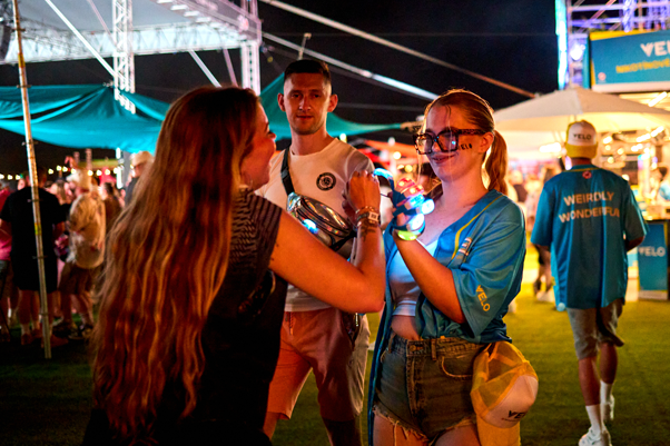 Už pri príchode vás vítal náš vynovený kiosk, ktorý sa stal neprehliadnuteľným bodom na runway. Bežal naplno vo dne aj v noci a jeho svetelná atmosféra priťahovala ľudí ako magnet – niektorí si tu dokonca robili svoje vlastné mini parties. Presne tá Weirdly Wonderful™ energia, ktorú na Grape inde nenájdete.
